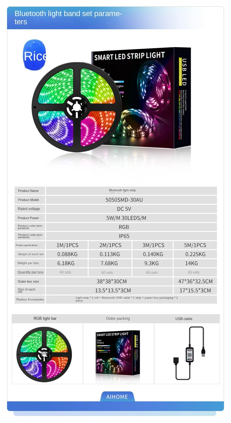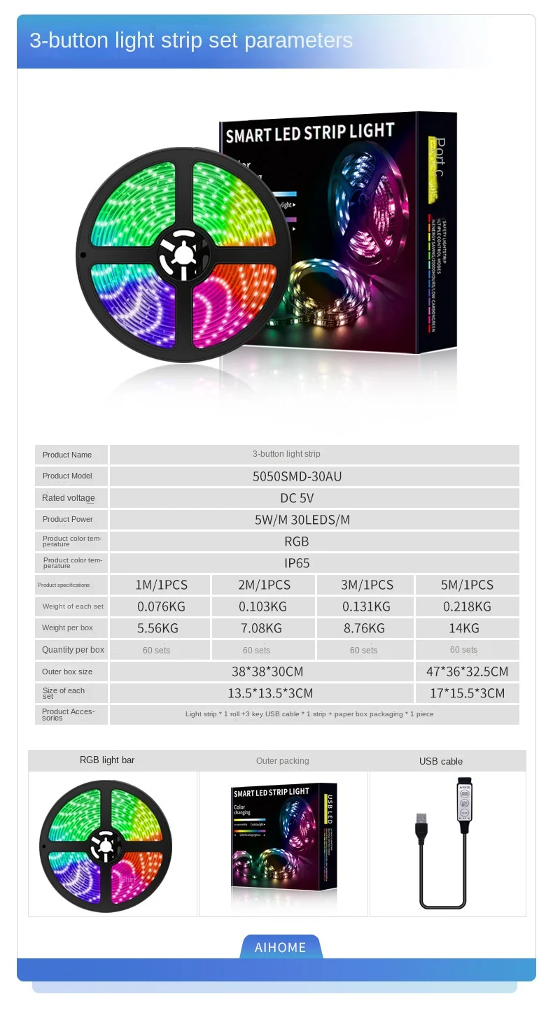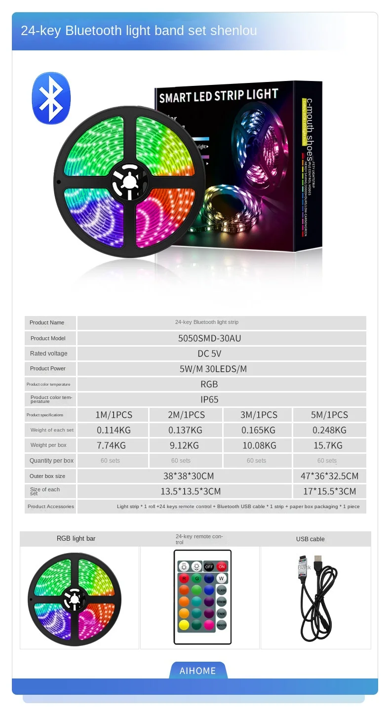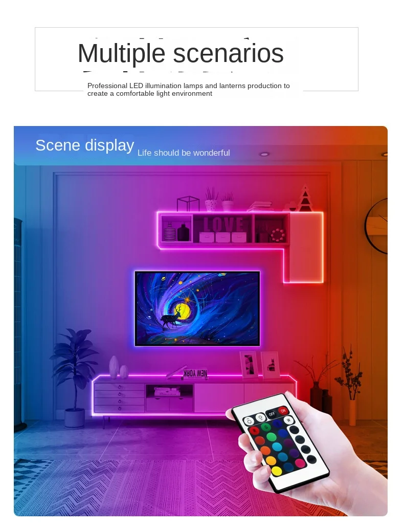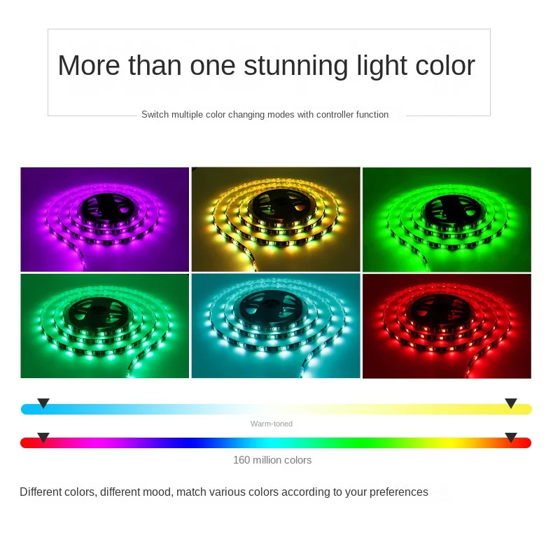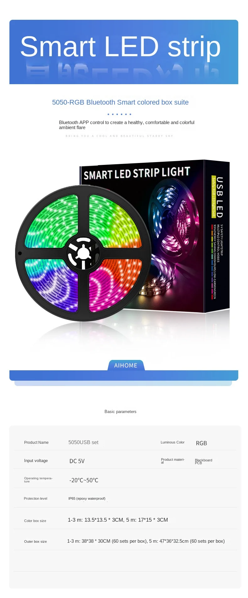Smart RGB LED Strip 5M – USB 5V Waterproof Light with Remote & Music Mode