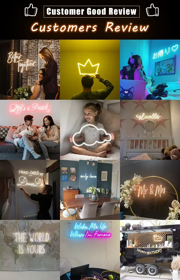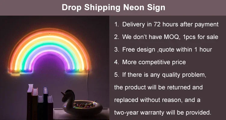 LED Driver, accessories inside the box and Seal the box with tape 6.Wrap the box with cleaning film and stick fragile sticker. FAQ Q1:What is your MOQ ? A:LED Neon sign MOQ is One Piece. Q2:Do you supply Drop shipping? A: Matt supply drop shipping for any led neon sign. Q3:Are you factory or trade company? A: Matt is a professional manufacturer focus on custom led neon sign. Q4:What is your neon sign warranty? A:All LED Neon signs supply 2 years warranty,if the neon signs fail to work during years,we will send a new led neon sign to customers. Q5:What is your Payment term ? A: PayPal, Western Union; Wire transfer etc. Q6: Lead time? A:-5-7working days for small orders.-about 10-20 days for large quantities,it depends on. Q7:What details are needed before production ?
