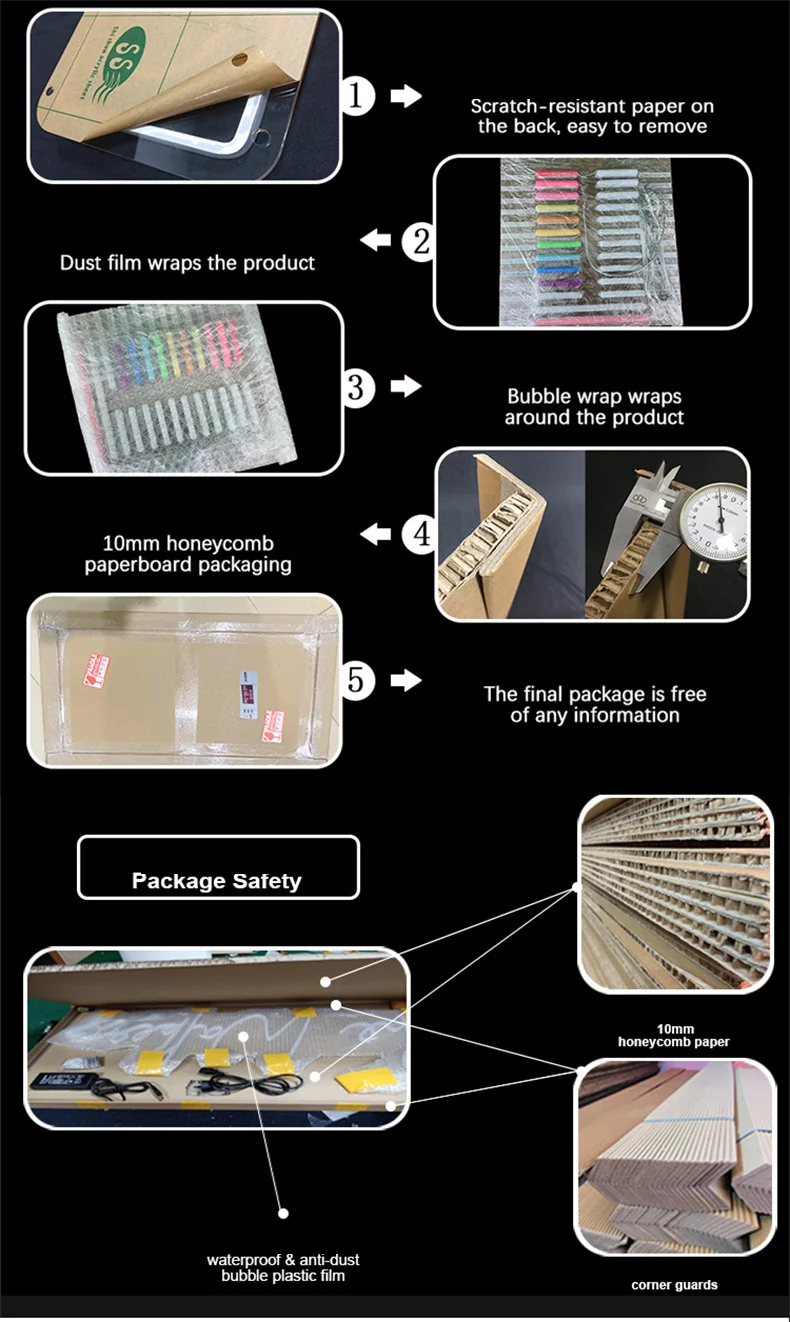 Step from 1 to 61.Clean the neon sign with alcohol 2.Use Air bubble film to wrap the neon sign 3.Cut the 1CM thickness honeycomb cardboard to
